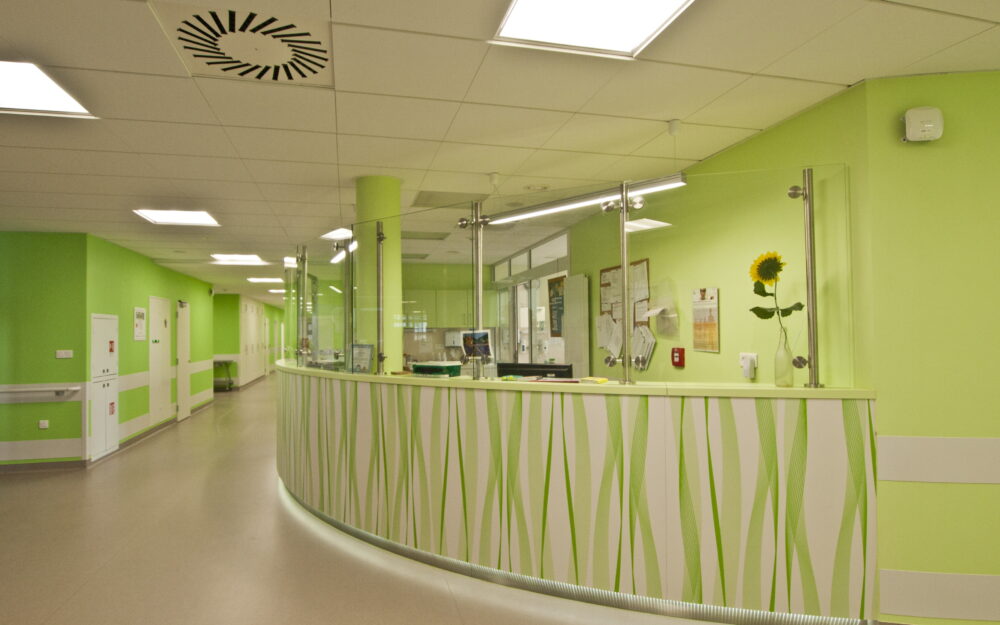 Záměrem rekonstrukce bylo modernizovat dispoziční a provozní uspořádání interního pavilonu nemocnice.