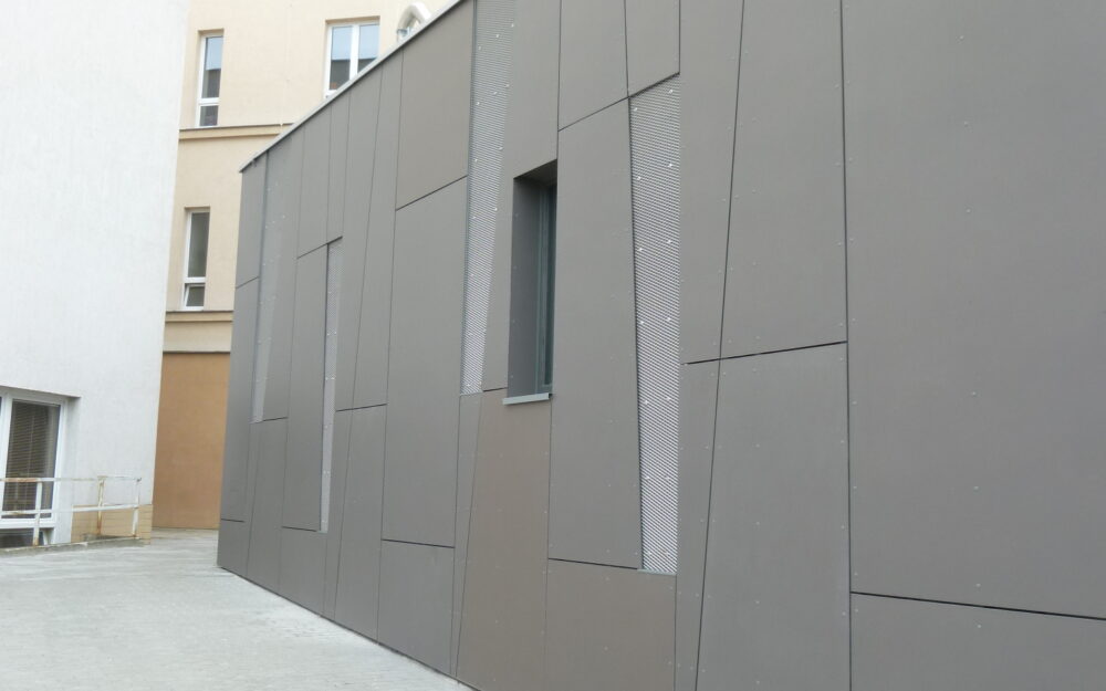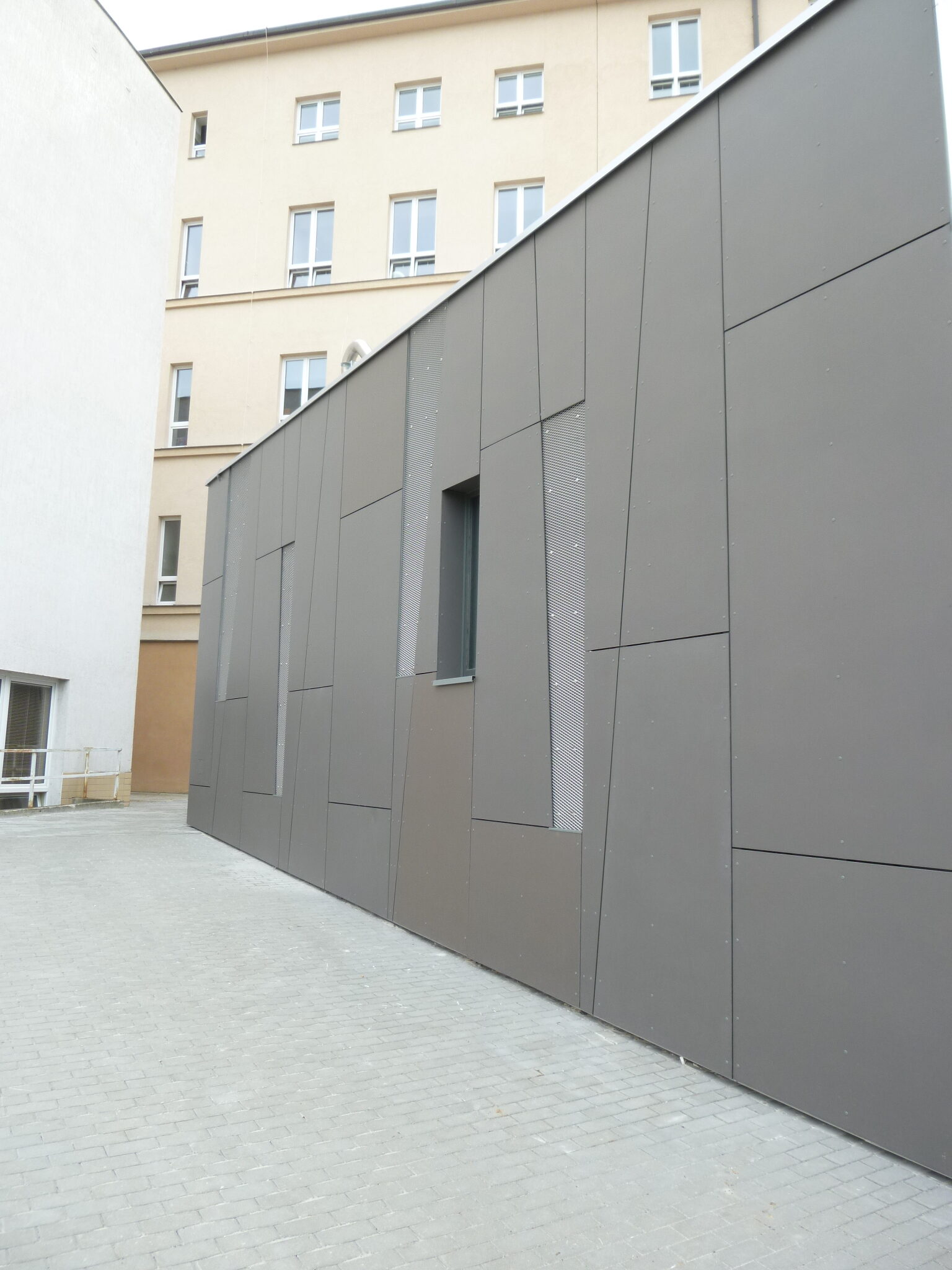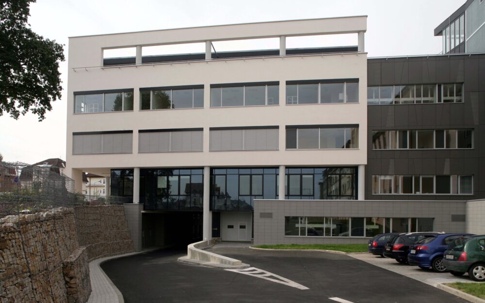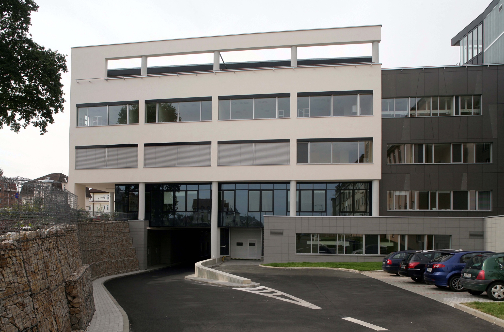 Vnější vzhled objektu vychází z jasných funkcionalistických principů a využívá kombinace moderních materiálů. Přiznává železobetonovou skeletovou konstrukci s horizontálními okny a zvýšenou atikou, za kterou se nachází technické podlaží.