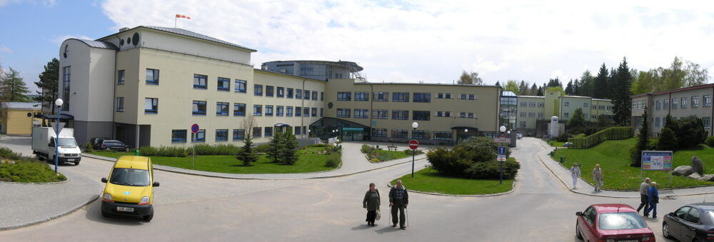 Areál nemocnice města známého svým lyžařským areálem