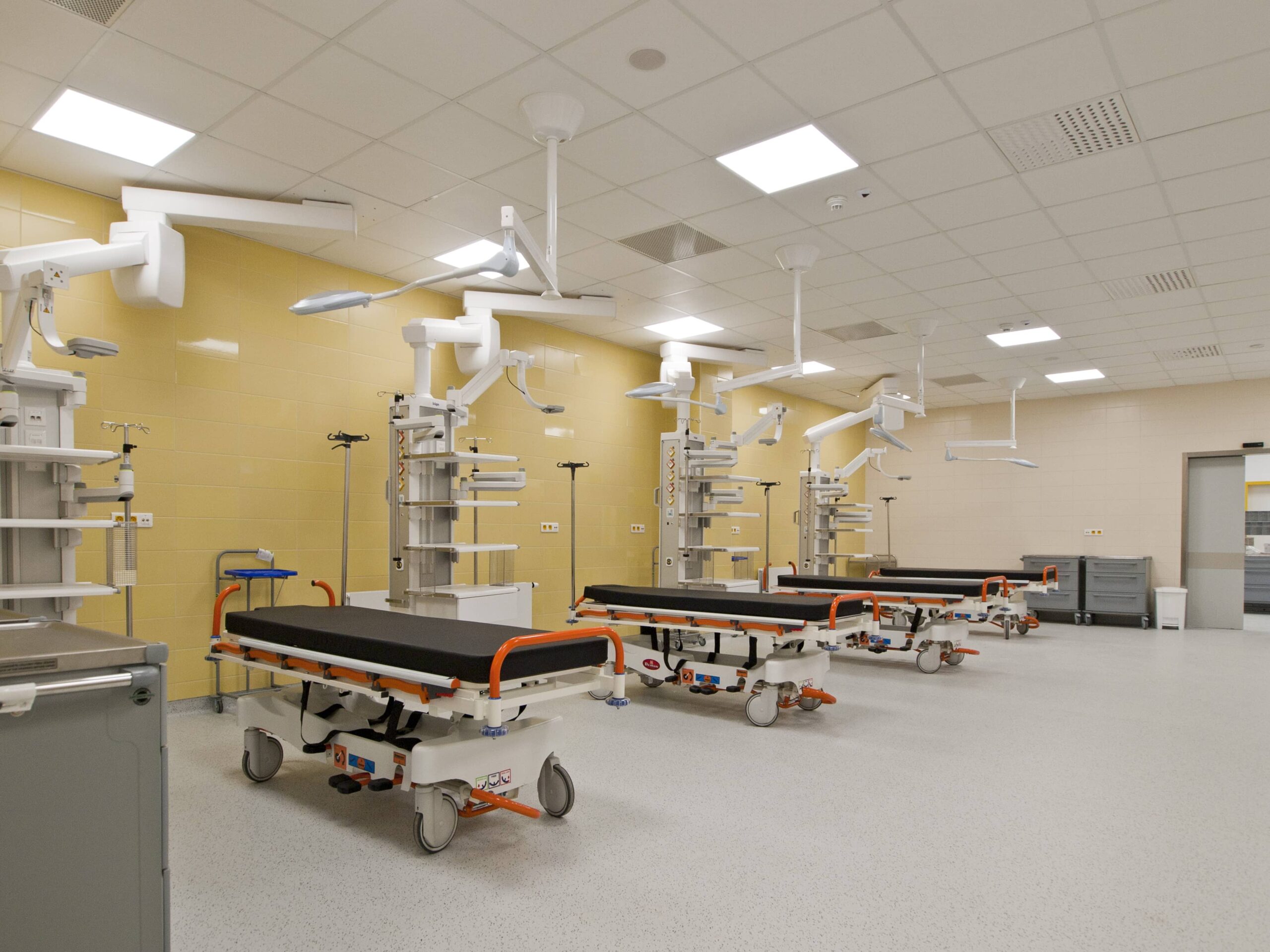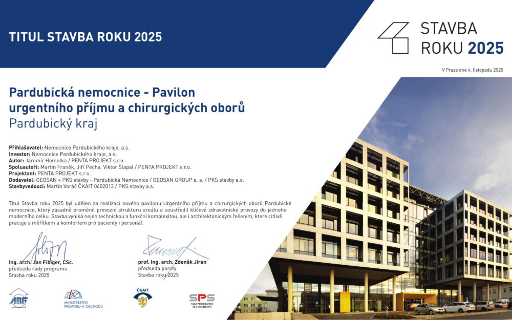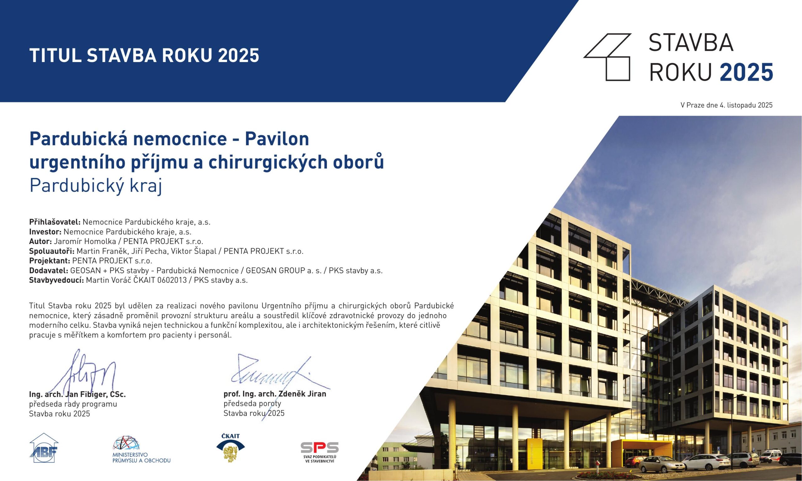 Nový pavilon nemocnice, který je klíčovou stavbou pro celou Pardubickou nemocnici, neboť v rámci jediného objektu centrálního urgentního příjmu jsou umístěny nové provozy nemocnice.  Zároveň byly do objektu přesunuty některé stávající provozy chirurgických oborů, tak aby byly blíže centru nemocnice a blíže diagnostickým komplementům. V pavilonu jsou umístěna oddělení ARO, JIP, lůžka pro chirurgii, cévní chirurgii, ortopedii, traumatologii, dětskou chirurgii, neurochirurgii, 111 operačních sálů, pooperační pokoj s 18 lůžky.