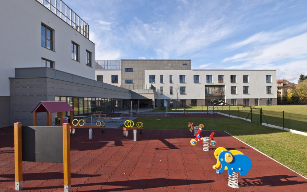 Novostavba domova pro seniory a mateřské školy v areálu Nemocnice Jihlava.