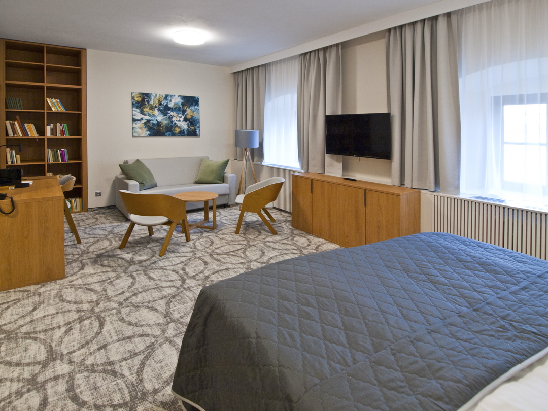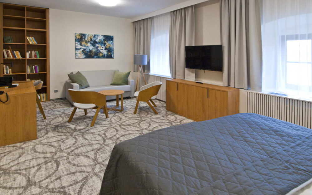 V roce 2019 byl dokončený projekt opět vrácen našemu atelieru za účelem zpracování technické revize proběhlých prací, zejména v kontextu s požadavky HZS, památkové péče a dále z důvodu kompletního přepracování projektu interiéru. Konečnou kombinací všech tří projektů vznikl v rámci náročné rekonstrukce probíhající mezi lety 2020–2022 čtyřhvězdičkový boutique konferenční hotel designově propojený se spisovatelem Franzem Kafkou, který v Třešti pobýval v letech 1900-1907 a jehož rukopis a ilustrace se promítly do grafického designu infosystému a loga zámku (autor Martin Utíkal) – to vše při zachování památkově hodnotných této památkově chráněné stavby.